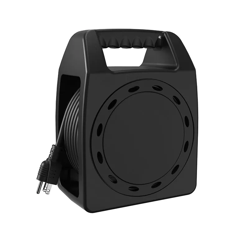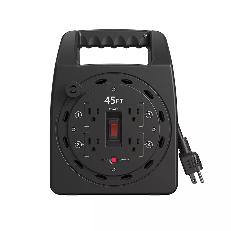 Multifunctional 4 Outlets Plastic Cord Reel 45ft with Overload Protection ສາມາດນໍາໃຊ້ໃນ scene ລວມທັງຫ້ອງນອນ, ຫ້ອງຮັບແຂກແລະເຮືອນຄົວ.