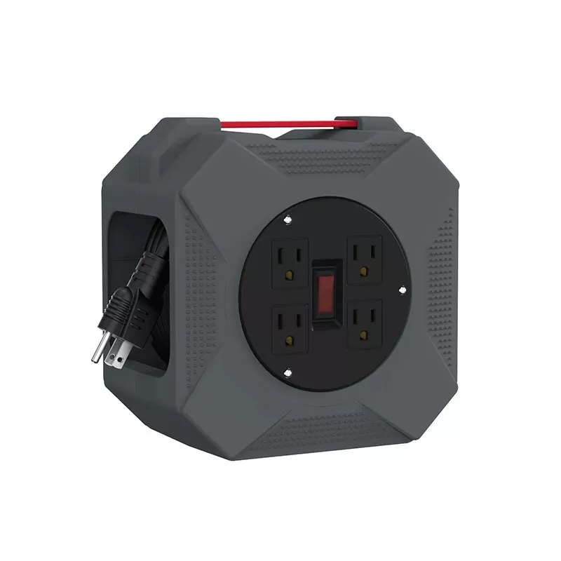 Multifunctional 4 Outlets Plastic Cord Reel 45ft ສາມາດນໍາໃຊ້ໃນ scene ລວມທັງຫ້ອງນອນ, ຫ້ອງຮັບແຂກແລະເຮືອນຄົວ. ກັບຮູບສາມາດປັບແຕ່ງໂລໂກ້ສະເພາະ.
