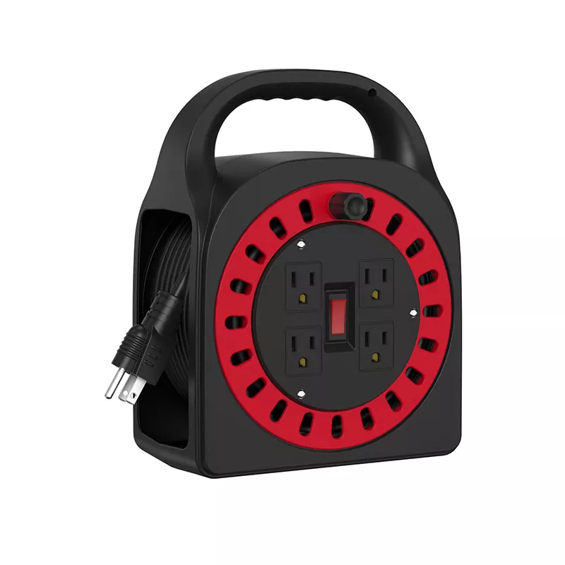 Multifunctional 4 Outlets Plastic Cord Reel 50ft ສາມາດໃຊ້ໃນ scene ລວມທັງຫ້ອງນອນ, ຫ້ອງຮັບແຂກແລະເຮືອນຄົວ. ກັບຮູບສາມາດປັບແຕ່ງໂລໂກ້ສະເພາະ.
